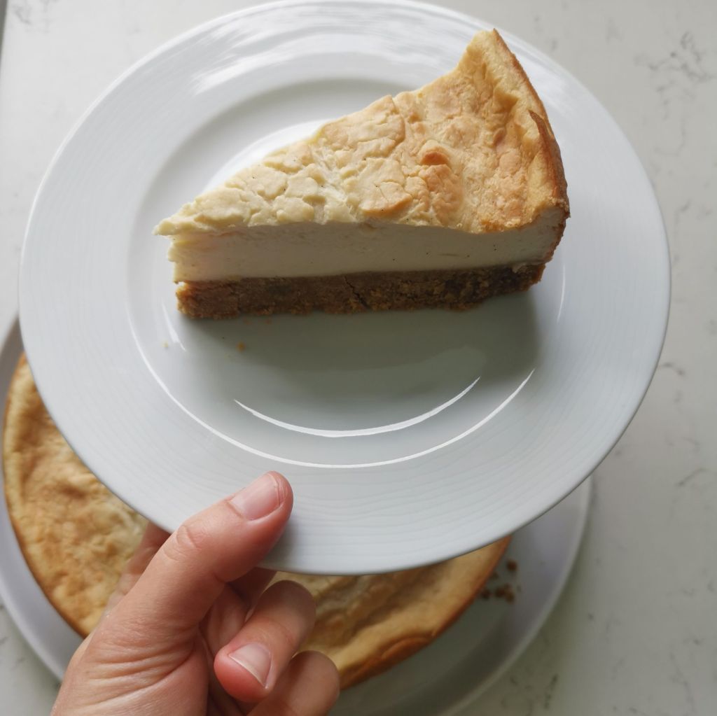 Bake at 170℃ for 50 minutes in the centre of your preheated oven until golden on top. After baking, your cheeze cake will still have a little wobble in the centre – this is normal and will firm up when chilled.